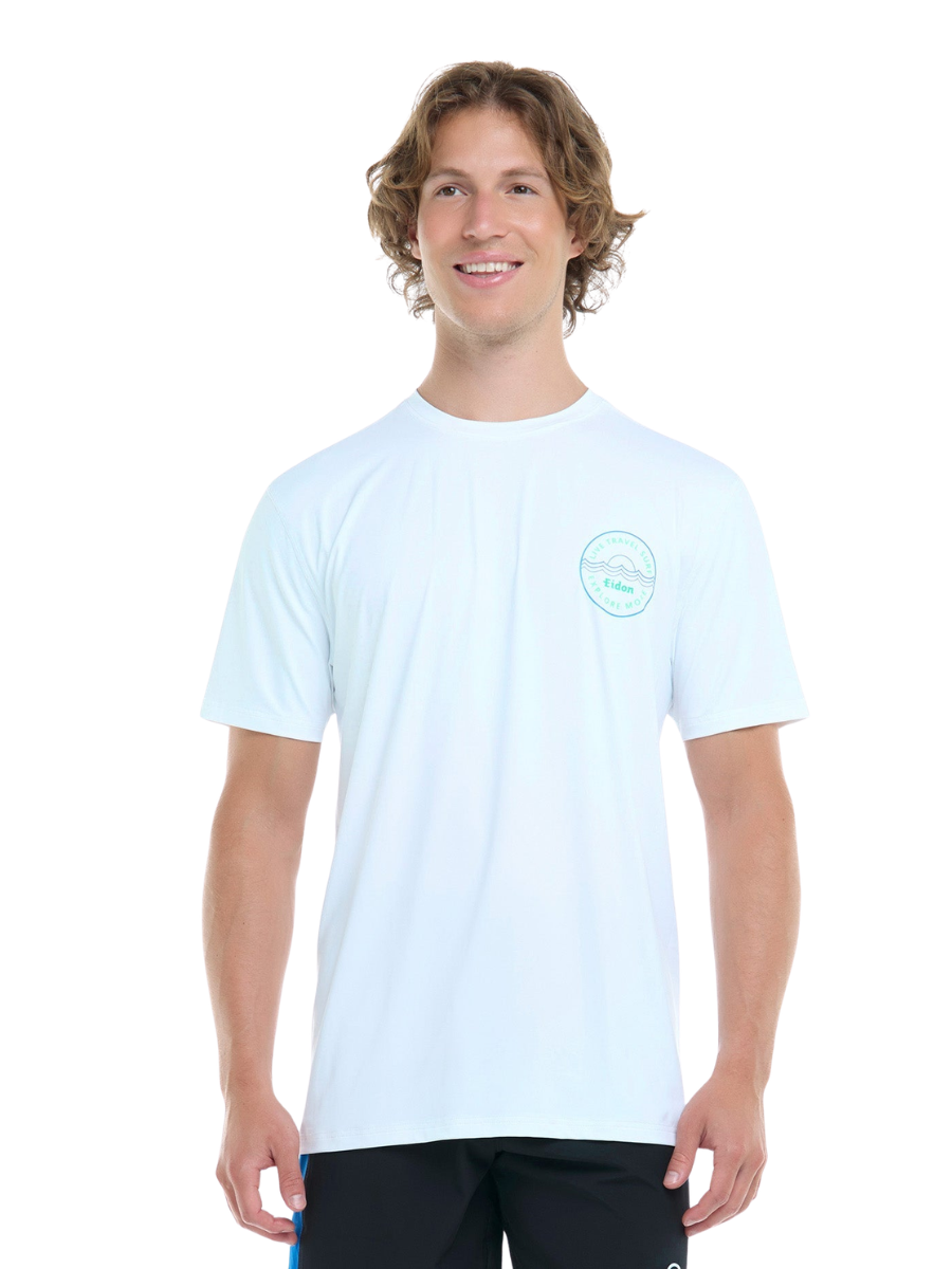 The High Noon Short Sleeve Rashguard by EIDON delivers comfort, style, and sun protection. Featuring a classic crew neck and UPF 50 fabric, it’s perfect for surf sessions, beach days, or simply lounging under the sun. Stay protected while you ride the waves or relax on the shore.